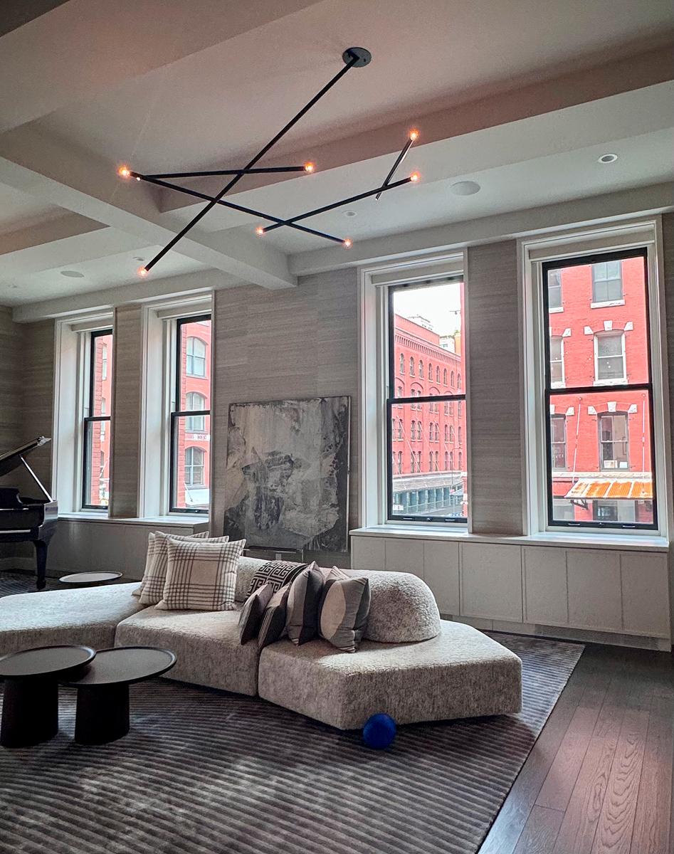 Casting an array of sculpturally illuminated cascading sticks, the 5 Stick Horizontal will fill the void of any space seeking eloquent grounding energy